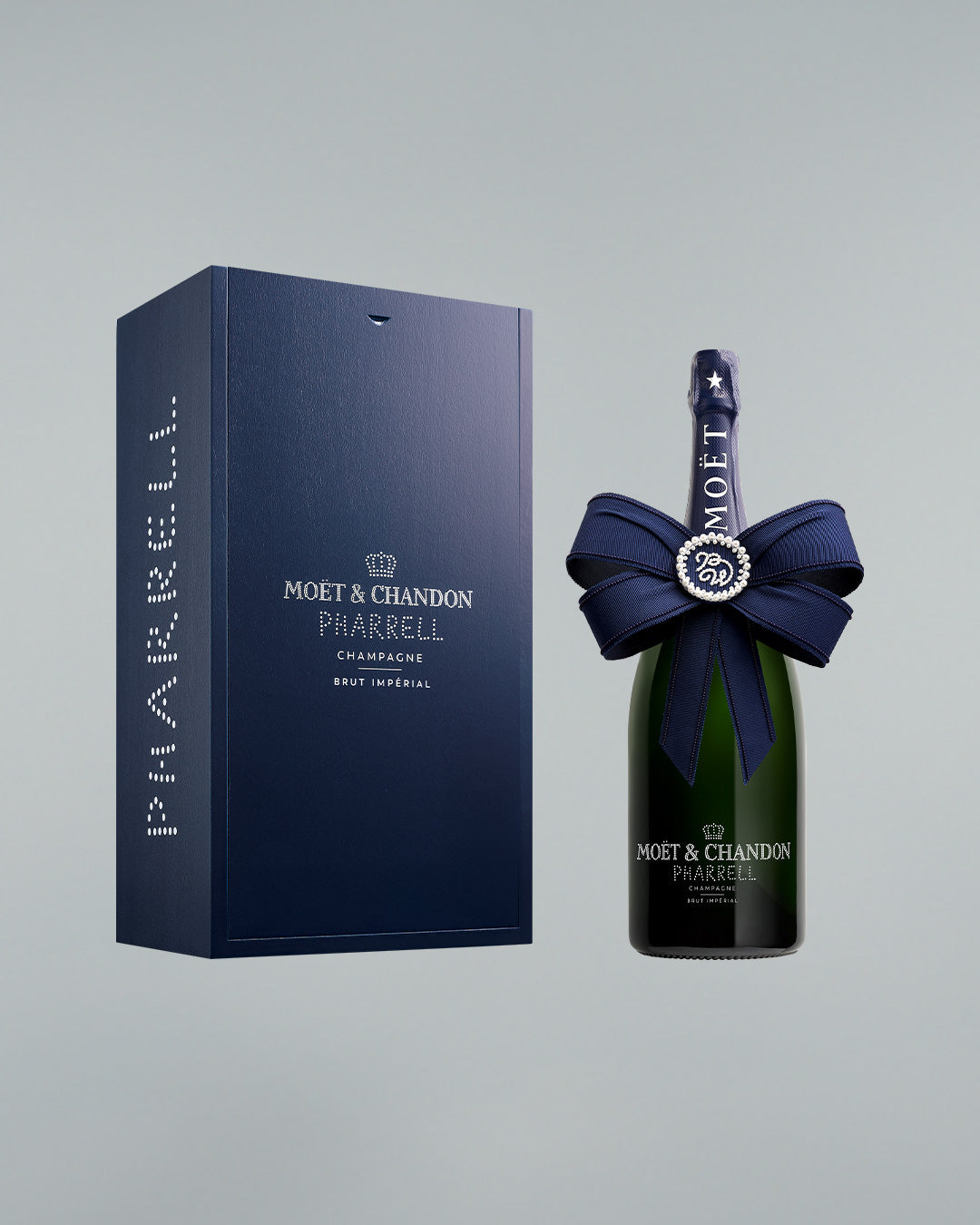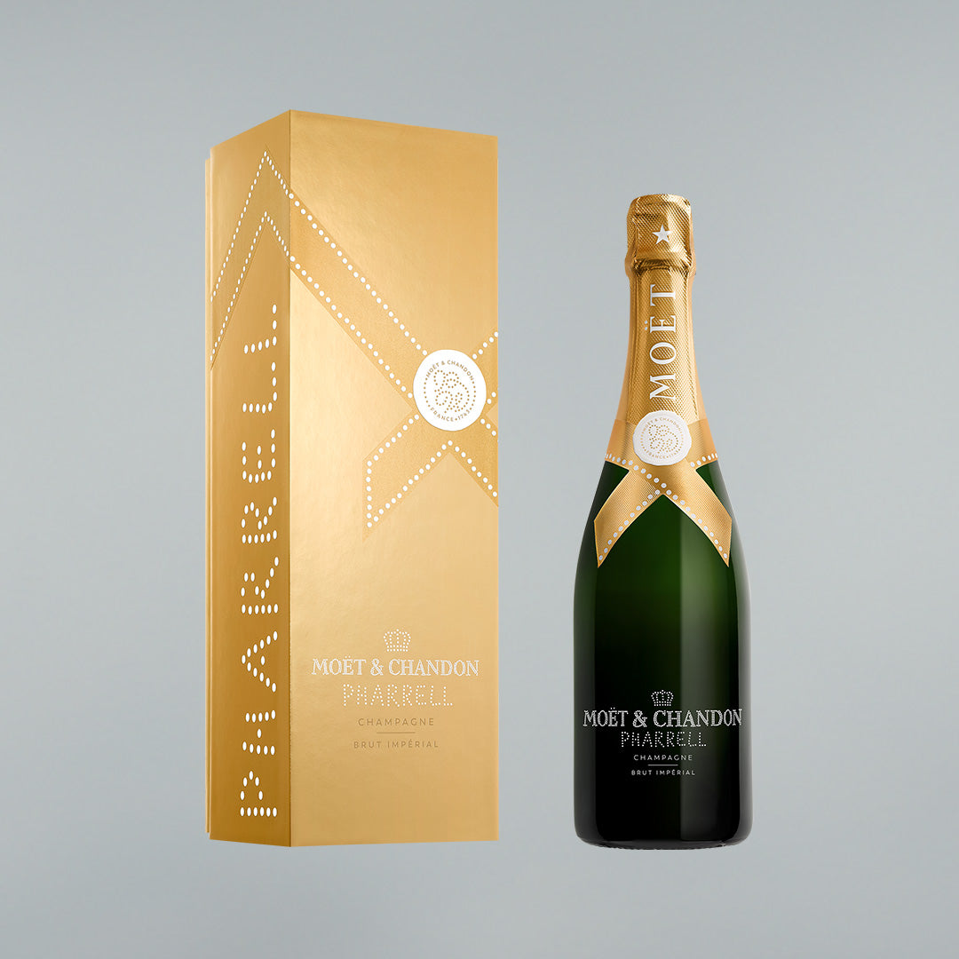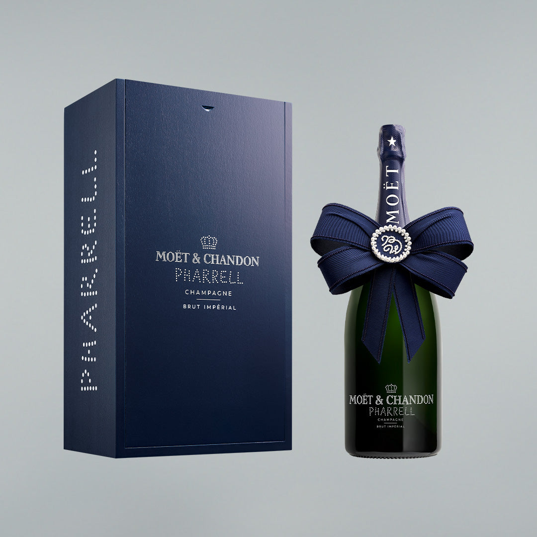 To elevate the birthday celebration, Moët & Chandon and Pharrell Williams unveil a limited-edition Brut Impérial giftbox dressed in Midnight Blue, Gold or Deep Red. Pharrell's signature is elegantly featured in white dotted pearls on the bottle and giftbox, turning each piece into a true collector's item.